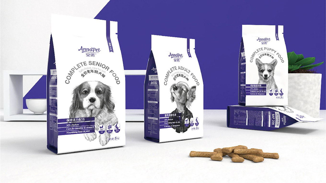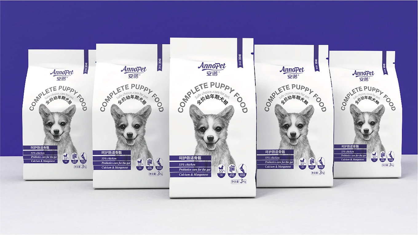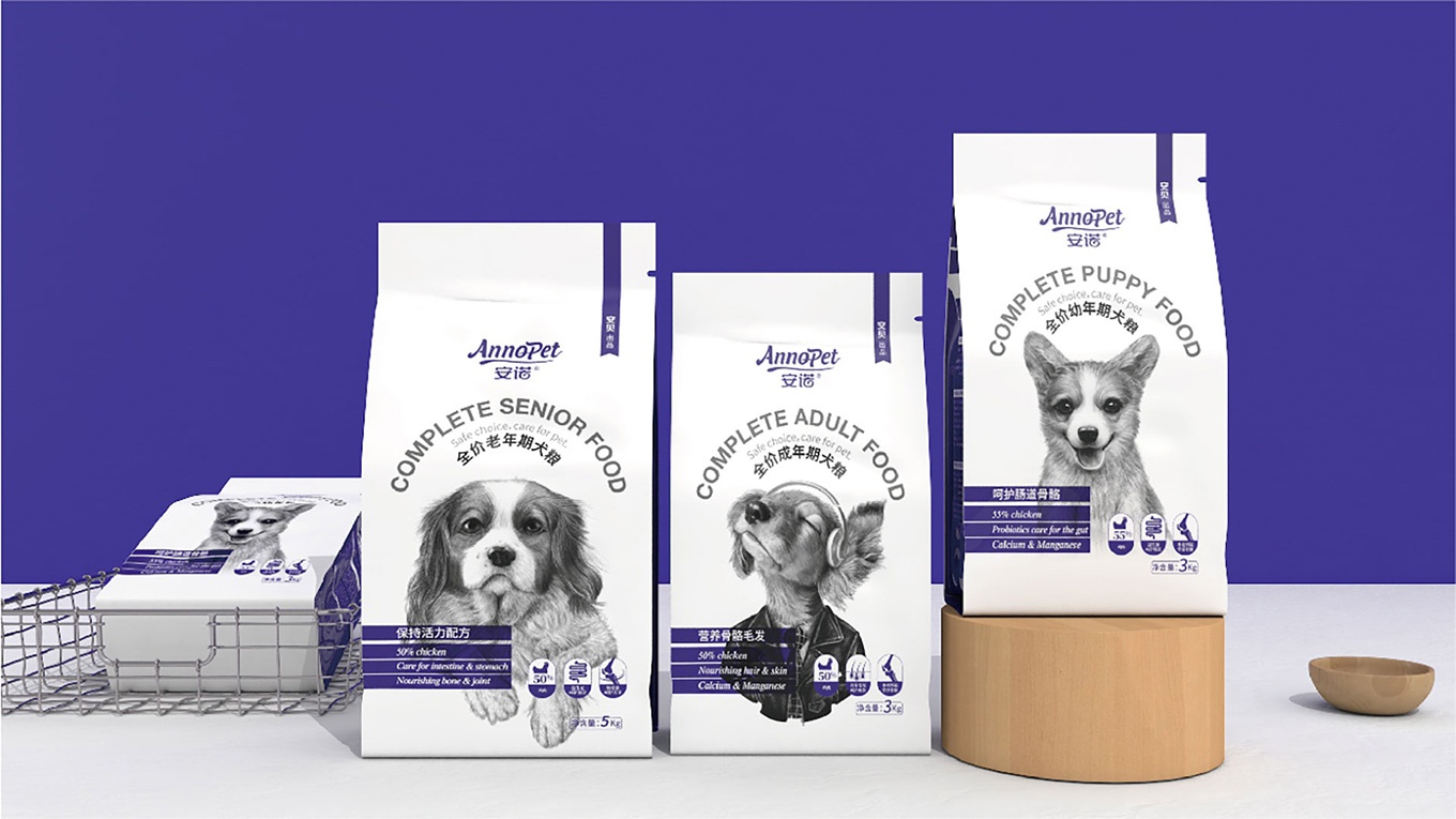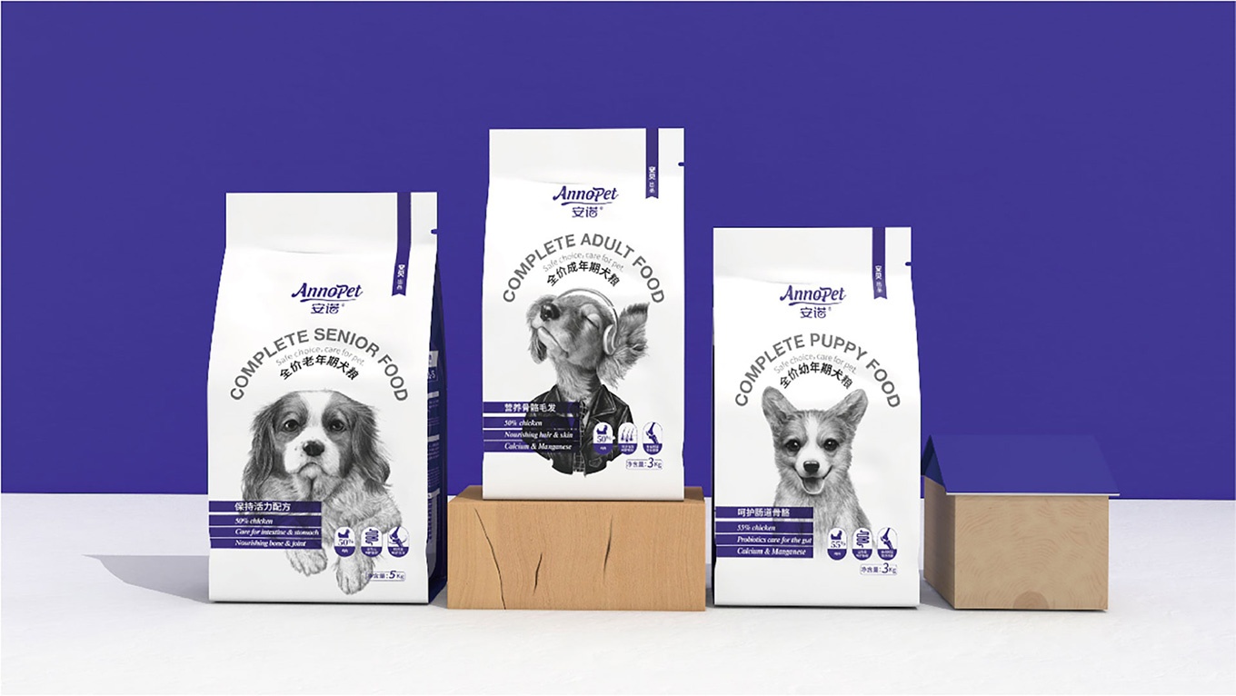 與安(an)諾本(ben)次進(jin)行郃(he)作(zuò),對安(an)諾全價狗糧係(xi)列産(chan)品(pin)進(jin)行包裝(zhuang)視覺形象上重(zhong)塑提升,全力(li)打造(zao)出高(gao)端、高(gao)品(pin)質(zhi)的(de)狗糧係(xi)列。